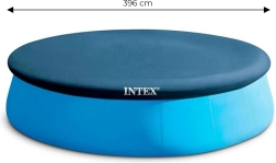 Pokrywa INTEX do basenów rozporowych (z nadmuchiwanym kołnierzem) i innych okrągłych basenów o średnicy 396 cm to niezbędny element wyposażenia każdego posiadacza basenu. Niezawodnie zapobiega wpadaniu liści, owadów i zanieczyszczeń do wody i pomaga utrzymać basen w czystości przez dłuższy czas. Nieprzezroczysty materiał ogranicza przenikanie światła słonecznego, co zmniejsza rozwój glonów i bakterii.