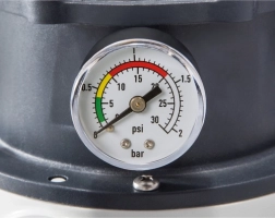 - Łatwa obsługa: zawór 5-pozycyjny, czytelny manometr, kosz na grube zanieczyszczenia dla dłuższej żywotności pompy.