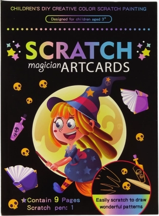 Odkryj kreatywną zabawę z zestawem zdrapywanek do kolorowania dla dzieci z motywami czarownic. Wystarczy zeskrobać czarną warstwę drewnianym rysikiem, aby odsłonić kolorowe ilustracje. Idealne do rozwijania wyobraźni i małej motoryki, praktyczne wymiary dla dziecięcych dłoni oraz bezpieczne wykonanie z certyfikatem CE.