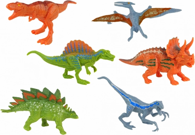 Zestaw zawiera sześć realistycznych figurek dinozaurów, które reprezentują różne gatunki i są idealne dla małych miłośników prehistorycznych stworzeń.