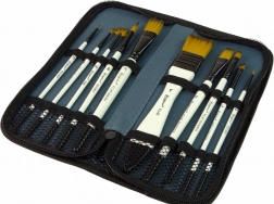 Ten artystyczny zestaw oferuje szeroki wybór pędzli o różnych kształtach i rozmiarach, które umożliwiają twórczą swobodę podczas malowania. Zawiera pędzle do delikatnych i mocnych linii, wypełniania powierzchni, mieszania kolorów i precyzyjnego konturowania. Każdy pędzel wyposażony jest w miękkie włosie, co zapewnia płynne i precyzyjne pociągnięcia. Drewniane rączki gwarantują komfort i pełną kontrolę nad pędzlem.