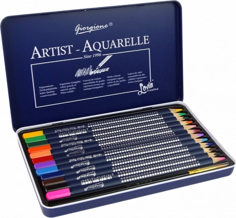 Z tym zestawem 12 akwarelowych kredek i metalowego etui otwierają się nowe możliwości dla Twoich dzieł artystycznych. Użycie jest proste: rysuj jak zwykłą kredką, a następnie za pomocą dołączonego pędzelka, który zanurzysz w wodzie, uzyskasz efekt akwareli. Stylowy i kompaktowy design tego opakowania sprawia, że zestaw jest idealnym rozwiązaniem do łatwego przenoszenia i przechowywania.