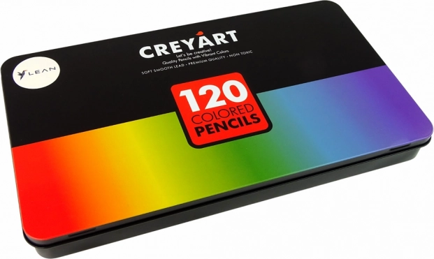 Kompletny zestaw do twórczej pracy: 120 artystycznych kredek w eleganckim metalowym etui z 3 poziomami po 40 sztuk. Kredki mają długość 17 cm i czarny lakier dla wygodnego chwytu. Praktyczna organizacja, łatwy dostęp dzięki elastycznym paskom, certyfikacja CE i zgodność z EN71. Odpowiednie dla dzieci od 3 lat oraz dorosłych.
