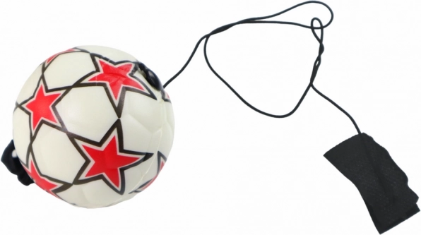 Lekka piłka nożna na gumce z wytrzymałego PU o średnicy 6 cm z paskiem na rzepy dla wygodnego mocowania. Biały design z czerwonymi gwiazdkami zapewnia zabawę na świeżym powietrzu i trening koordynacji. Certyfikaty CE, norma EN71, dla dzieci 3+.