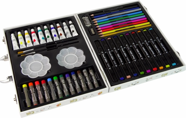 - Wszechstronne wyposażenie do rysunku i malarstwa w jednym kuferku.