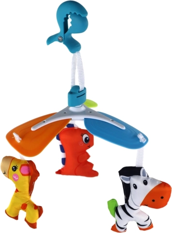 Karuzela jest wyposażona w specjalny klips, który można łatwo i bezpiecznie przymocować wszędzie. Można ją zamocować na krawędzi łóżeczka, na pałąku wózka lub na paskach nosidełka, co umożliwia dziecku dostęp do jej uroków w każdej sytuacji.