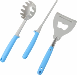 Zestaw zawiera narzędzia, takie jak łyżka do makaronu, obieraczka i ostrzałka, co umożliwia pełną symulację przygotowywania w kuchni.