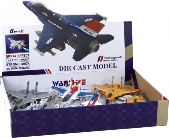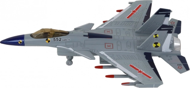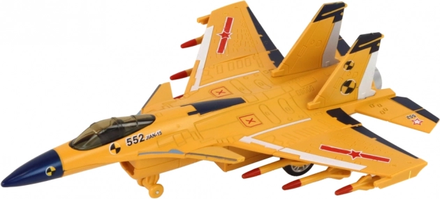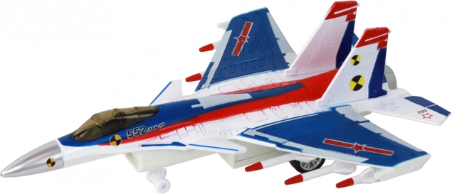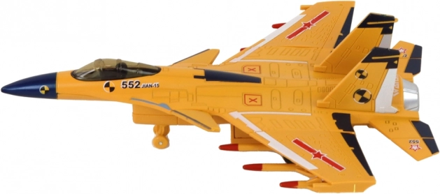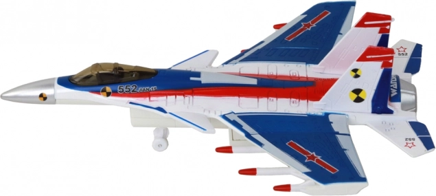 Po włączeniu samolot wydaje dźwięki startującego myśliwca, co zwiększa autentyczność i pobudza dziecięcą wyobraźnię podczas zabawy.