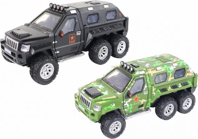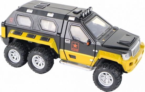 Realistycznie wykonany samochód terenowy dla małych odkrywców oferuje wysuwane działo, efekty świetlne i dźwiękowe oraz napęd bezwładnościowy dla dynamicznej jazdy. Dzięki gumowym kołom płynnie porusza się po różnych nawierzchniach, wykonany jest z wysokiej jakości plastiku i dostępny w 3 kolorach (czarny, żółty, moro). Zasilanie 3× AAA (brak w zestawie). Odpowiedni od 3 lat. Wymiary 18 × 7 × 9,5 cm.