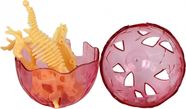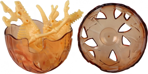 To przezroczyste plastikowe jajko skrywa niespodziankę w postaci żółtego szkieletu dinozaura, który dziecko samodzielnie składa. Zabawka wspiera naukę przez zabawę, rozwija cierpliwość i logiczne myślenie, a jednocześnie pobudza wyobraźnię podczas odkrywania świata prehistorii.
