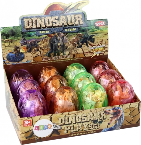 W każdym jajku znajduje się żółty plastikowy szkielet dinozaura do łatwego złożenia – zabawa i nauka w jednym.