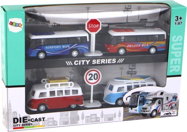 - Zestaw zabawek – 2 kampery i 2 autobusy