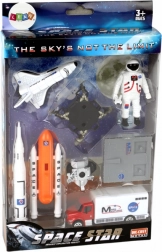 Kompletny zestaw z astronautą, rakietami, statkiem kosmicznym i wyrzutnią pozwala dzieciom tworzyć autentyczne scenariusze startów i lądowań.