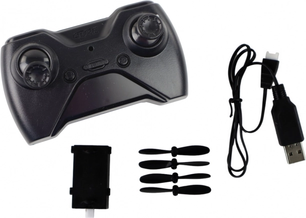 W zestawie znajdują się także cztery wymienne śmigła oraz przewód do ładowania akumulatora.