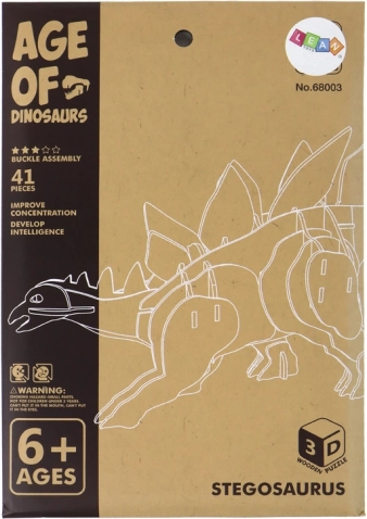 Odkryj zabawne i edukacyjne drewniane 3D puzzle Stegozaur z 41 elementami. Dzieci podczas układania rozwijają logiczne myślenie, wyobraźnię przestrzenną oraz małą motorykę. Model można dla większej wytrzymałości skleić, a następnie pomalować według własnej wyobraźni. Odpowiednie dla dzieci od 6 lat, z certyfikatem CE i normą EN71.