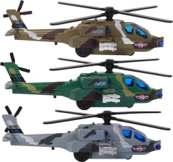 Każdy helikopter posiada własny napęd, efekty świetlne i dźwiękowe. Po naciągnięciu uruchamia się mechaniczny napęd, śmigła zaczynają się kręcić, a zabawka porusza się automatycznie. To przyczynia się do realistycznych wrażeń i zabawy.