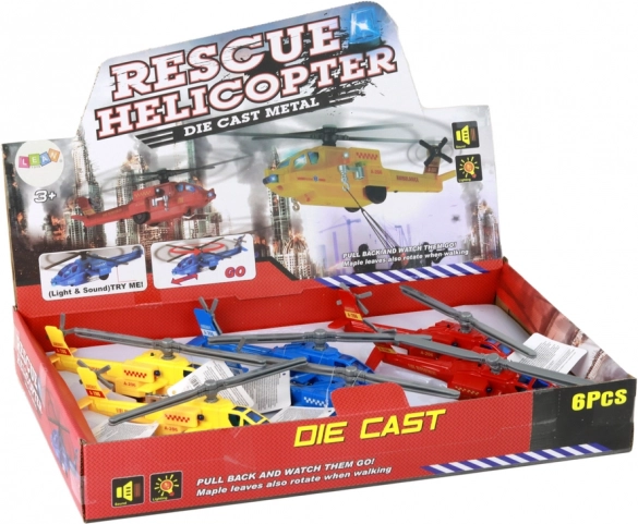 Zabawka jest wykonana z aluminiowego materiału, co nadaje jej nie tylko solidną strukturę, ale także wygląd podobny do prawdziwych ratunkowych helikopterów. Każdy model ma wbudowany napęd, dzięki któremu po nakręceniu zaczyna się poruszać, a wirniki się kręcą, co dodaje realizmu i zabawy.