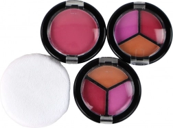 Paletka cieni w odcieniach różu, fioletu i niebieskiego uzupełniona złotym i srebrnym brokatem ucieszy każdą małą stylistkę. Dwie pomadki i paletki do konturowania dopełnią zabawny makijaż.
