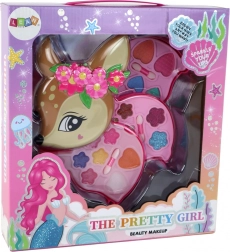 Odkryj zaczarowany świat makijażu dla dzieci z uroczym zestawem w kształcie jelonka. Zawiera trzy paletki: matowe cienie do powiek, błyszczące cienie oraz brokatowy żel w szerokiej gamie kolorów. Idealny do kreatywnej zabawy, rozwijania wyobraźni i motoryki małej. Produkty są łatwe w użyciu i odpowiednie dla dzieci od 8 lat.