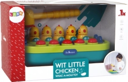 Rozkręć domową zabawę z młoteczkiem! Po włączeniu rozbrzmiewa wesoła melodia, a czerwone przyciski losowo się podświetlają. Twoim zadaniem jest trafiać doświetlone pozycje dołączonym młotkiem – aktywujesz w ten sposób ruch kurcząt i zbierasz punkty. Wraz ze wzrostem wyniku gra stopniowo przyspiesza, więc emocji i śmiechu nie zabraknie.