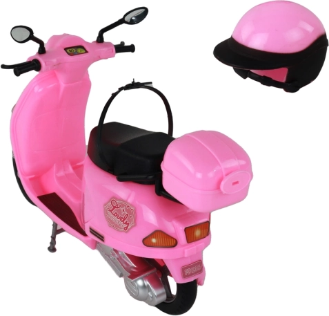 - Lalka, różowy skuter, różowy kask