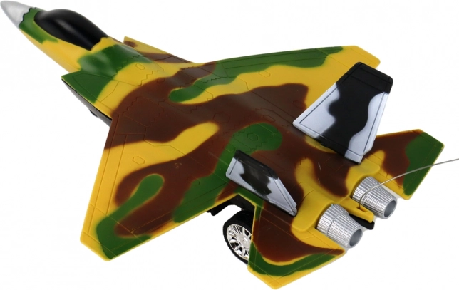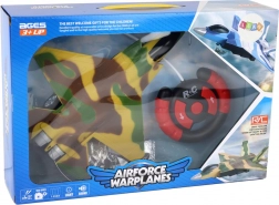 RC samolot z wojskową kamuflażą przynosi autentyczny wygląd dzięki kombinacji zielonego, żółtego i brązowego koloru. W zestawie znajduje się zdalne sterowanie, które zapewnia pełną kontrolę nad ruchami samolotu i umożliwia płynne manewrowanie do przodu i do tyłu. Dzięki obrotowym kołom można kierować samolot w prawo i w lewo.