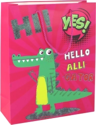 Dodaj swoim prezentom szyku! Różowa torebka prezentowa z krokodylem idealnie sprawdzi się na urodziny, święta i dziecięce przyjęcia. Łączy atrakcyjny wygląd z praktyczną funkcjonalnością – jest lekka, a jednocześnie wystarczająco mocna do bezpiecznego przenoszenia podarunków.