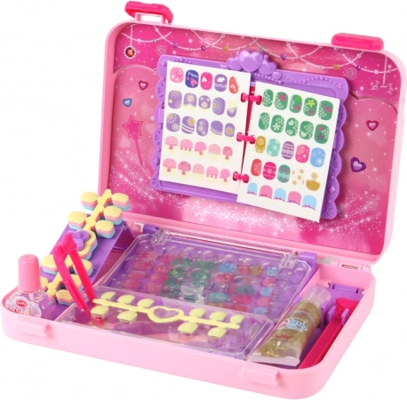 Różowy dziecięcy kuferek do manicure z naklejkami i tipsami
