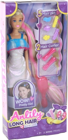 Zanurz się w świat mody i kreatywności z lalką Anlily, która zapewni niezapomnianą zabawę. Ta elegancka lalka ma długie blond włosy z kolorowymi akcentami, co umożliwia tworzenie różnorodnych fryzur i eksperymentowanie ze stylem.