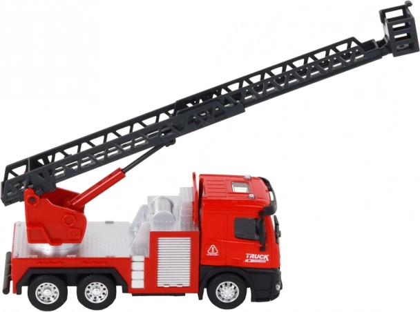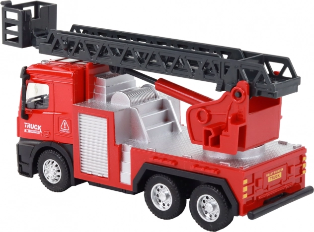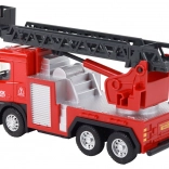 Ten model wozu strażackiego wyróżnia się realistycznym designem i detalami, takimi jak kabina i boczne panele, co zwiększa jego atrakcyjność podczas zabawy.