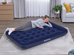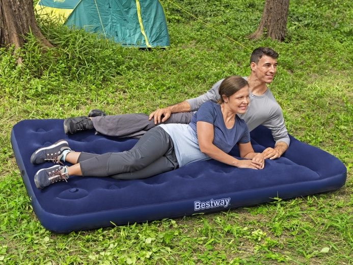 Dwuosobowy dmuchany materac BESTWAY oferuje wygodny sen w domu i w podróży. Dzięki wymiarom 191 × 137 × 28 cm wygodnie pomieszczą się na nim dwie osoby dorosłe. Konstrukcja coil-beam zapewnia stabilność, miękka, welurowa powierzchnia przyjemny kontakt, a zintegrowana pompka nożna umożliwia szybkie napompowanie w każdym miejscu. Oczywistością jest wbudowana poduszka oraz szybkozawór spustowy do łatwego spuszczania powietrza.
