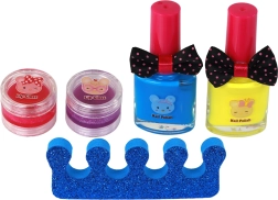 Ten zestaw zawiera wszystko, czego dzieci potrzebują do swojej pierwszej zabawy w kosmetykę. W komplecie są różne akcesoria do zdobienia paznokci, takie jak naklejki oraz dwa komplety sztucznych paznokci w odcieniach różu i fioletu. Dołączone lakiery do paznokci w kolorze niebieskim i żółtym pozwalają tworzyć unikalne wzory na paznokciach. Nie zapomnijmy o kolorowych cieniach i błyszczykach do ust, które umożliwiają dzieciom kreatywne tworzenie różnych stylizacji.