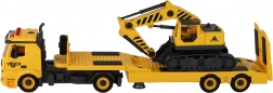Składana laweta z gąsienicową koparką ze światłami i dźwiękami – żółty zestaw DIY