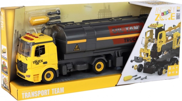 Części cysterny można łatwo montować i demontować za pomocą śrubokręta z dwiema nasadkami. Dzieci trenują małą motorykę, precyzję oraz logiczne myślenie.