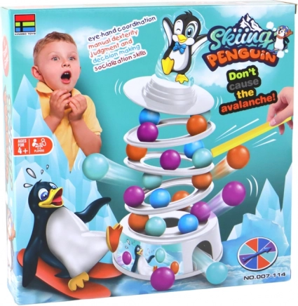 Ćwicz cierpliwość, zręczność i spostrzegawczość z wesołą rodzinną grą, w której kulki ślizgają się po lodowej wieży z pingwinem. Celem jest wkładanie do wieży kulek w wylosowanym kolorze i jednoczesne niewywrócenie jej – kto strąci pingwina, przegrywa. Świetna zabawa dla dzieci i dorosłych, bez potrzeby użycia baterii.