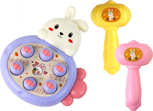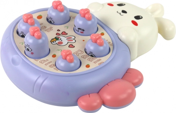 Animowane grafiki króliczka dodają figlarnego nastroju. Zestaw obejmuje specjalną planszę, na której umieszczono sześć marchewek. Marchewki wyskakują z losowych otworów na planszy, co czyni rozgrywkę bardziej emocjonującą i nieprzewidywalną.