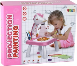 Ten różowy projektor jednorożec zamieni każdą chwilę w kreatywną przygodę. Dziecko może wybrać spośród 24 wyświetlanych szablonów i łatwo je odrysować. Dzięki 4 nóżkom zestaw można używać jako praktyczny stolik lub płaską tablicę do rysowania – idealny do tworzenia w domu i w podróży.