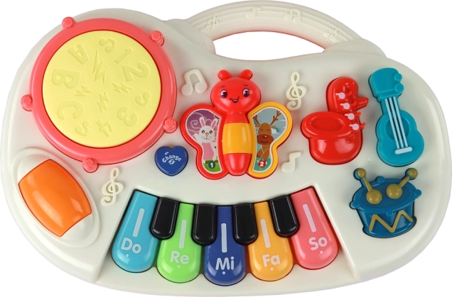 Ta zabawka nie tylko bawi, ale także wspiera rozwój sensoryczny, motoryczny i poznawczy dziecka. Pianinko w białej kolorystyce z motywem motyla to nie tylko świetna zabawka, ale również pomoc edukacyjna, która rozwija pasję do muzyki od najmłodszych lat.