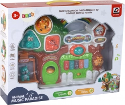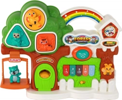 W koronie drzewa umieszczono panel edukacyjny, który pobudza zmysły malucha. Po naciśnięciu elementów kota, ptaka lub małpki każdy z nich wydaje charakterystyczne dźwięki. To doskonały sposób na rozwijanie umiejętności słuchowych i koordynacji ruchowej.