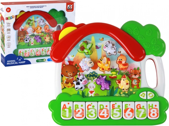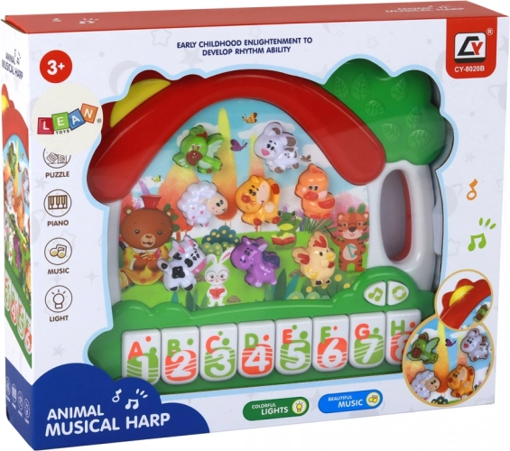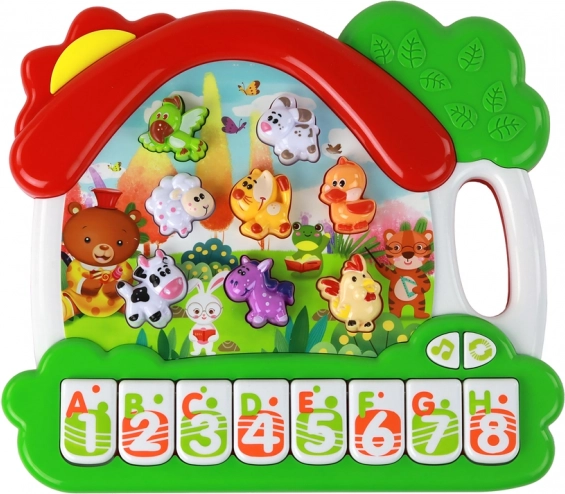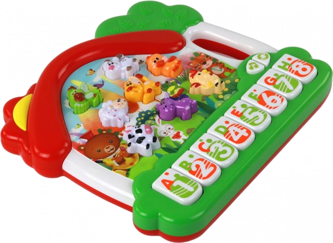 Pianinko zawiera klawisze oznaczone od A do H, co ułatwia naukę angielskiego alfabetu. Każda litera jest powiązana z konkretnym zwierzęciem oraz odpowiadającym mu dźwiękiem. Dziecko uczy się nie tylko liter, lecz także ich wymowy i kojarzy je z określonymi zwierzętami.