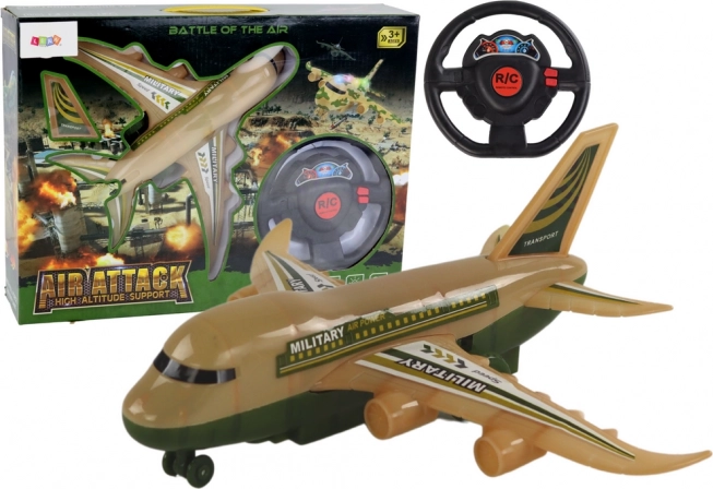 Wesoła zabawka w formie zdalnie sterowanego samolotu, wyposażona w wojskowy kamuflaż w odcieniach brązu i zieleni, daje dzieciom możliwość niekończących się przygód. Dzięki solidnemu wykonaniu i dbałości o detale ucieszy wszystkich małych miłośników lotnictwa. Dzięki dołączonemu kontrolerowi dzieci z łatwością przejmą kontrolę nad lotem. Sterowanie jest dostosowane także do małych rączek, co zapewnia łatwą obsługę.
