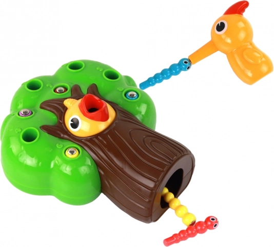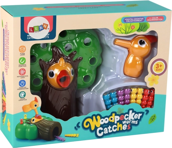 Ta magnetyczna gra zręcznościowa przynosi dzieciom radość z odkrywania oraz trening kluczowych umiejętności. Zadaniem jest za pomocą „ptasiej mamy” z magnesem wyciągać kolorowe robaczki z otworów w drzewie i przenosić je do dziobka głodnego pisklęcia. Aktywność rozwija precyzję ruchów, koordynację ręka–oko oraz uczy cierpliwości i logicznego myślenia.