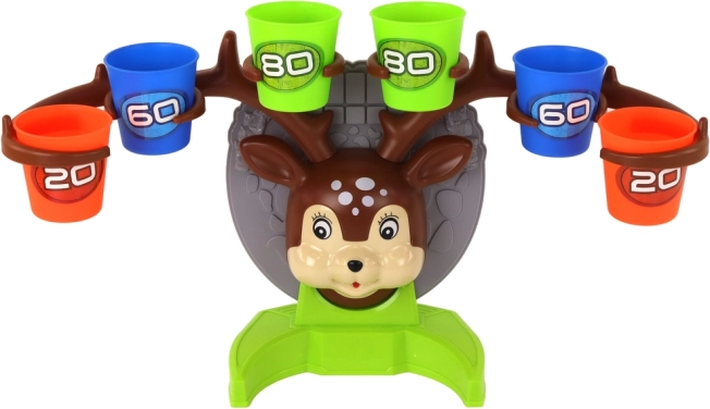 Zabawna zręcznościowa gra z motywem jelonka zamieni każde popołudnie w rodzinną rywalizację. Odbijaj piłeczki od stołu i trafiaj do punktowanych kubeczków, trenuj koordynację oko–ręka i ciesz się szybkimi rundami z klepsydrą. Można ją ustawić na podstawce lub powiesić na ścianie, odpowiednia dla dzieci od 4 lat.