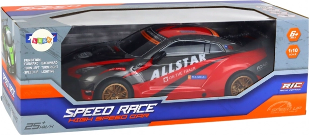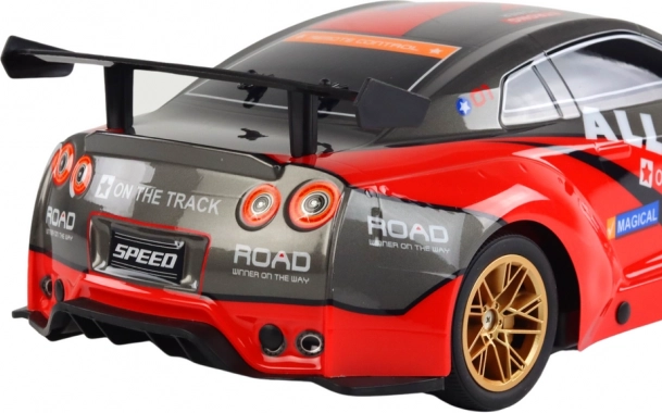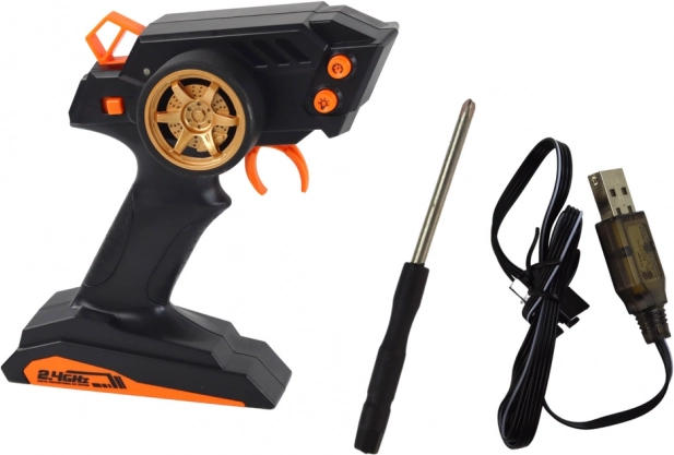 Realistyczny wygląd z czerwoną karoserią i złotymi felgami dopełniają efekty świetlne, które szczególnie wyróżniają się podczas jazdy o zmierzchu. W zestawie znajduje się akumulator 7.4 V oraz przewód do ładowania USB, więc szybko wrócisz na trasę.