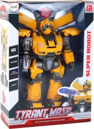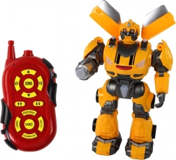 Robot wykonany jest z wytrzymałego plastiku, ma wyrazisty żółto‑czarny design i ruchome kończyny. Solidna konstrukcja gwarantuje długą żywotność i bezpieczne użytkowanie. Dzięki certyfikatom CE oraz zgodności z normą EN71 jest odpowiedni dla dzieci od 3 lat.