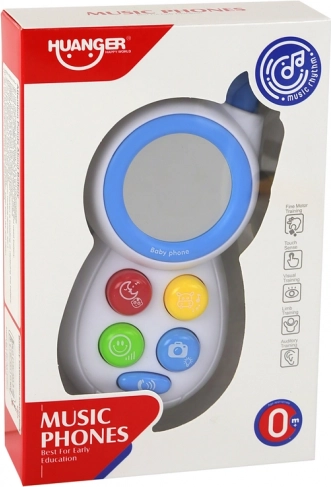 Każdy z pięciu przycisków tego interaktywnego telefonu ma unikalny motyw i wydaje charakterystyczne dźwięki, dzięki czemu każde naciśnięcie jest dla Twojego malucha nową dźwiękową przygodą. Lusterko pełniące rolę wyświetlacza zwiększa interaktywność, rozświetlając się podczas używania telefonu.