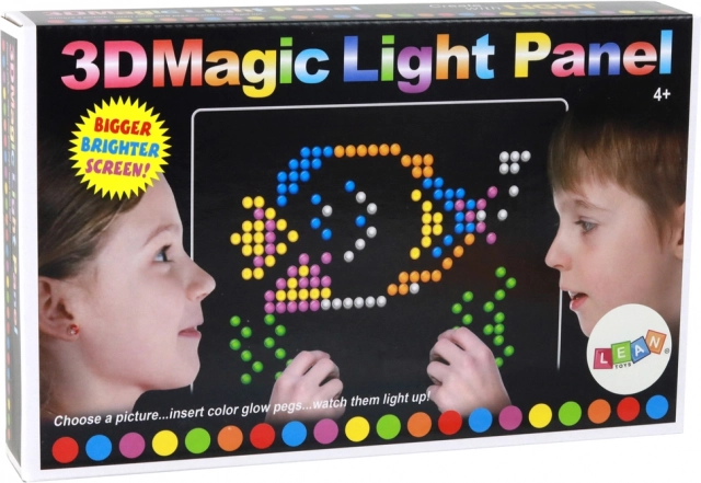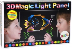 Z tą magiczną tablicą świetna zabawa jest gwarantowana. Wkładaj kołeczki w tablicę i twórz własne konstrukcje 3D. Magiczny moment następuje po włączeniu przełącznika z tyłu tablicy, gdy Twoje dzieło zaczyna świecić. Twórcza rozrywka dla każdego!
