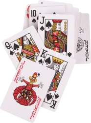Zawiera różne karty twarzowe, takie jak król, królowa i joker, które są niezbędne w klasycznych grach jak poker czy brydż.