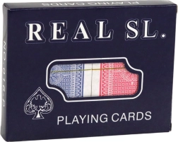 Karty do gry REAL SL oferują wyjątkowe wrażenia z gry z dwoma zestawami w klasycznym formacie. Karty wykonane są z wysokiej jakości kartonu z węglową wkładką i lakierowane dla zapewnienia doskonałego poślizgu i ograniczonej absorpcji wilgoci.