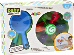 Zestaw zawiera również dwie łyżki, które służą nie tylko jako narzędzia do zabawy, ale również do rozwoju umiejętności motorycznych i koordynacji ruchowej. Dziecko może eksperymentować z nalewaniem wody do miseczek i obserwować, jak radośnie się obracają. Jedna z łyżek ma również otwory dla większej zabawy, co dodaje grywalnego elementu edukacyjnego.